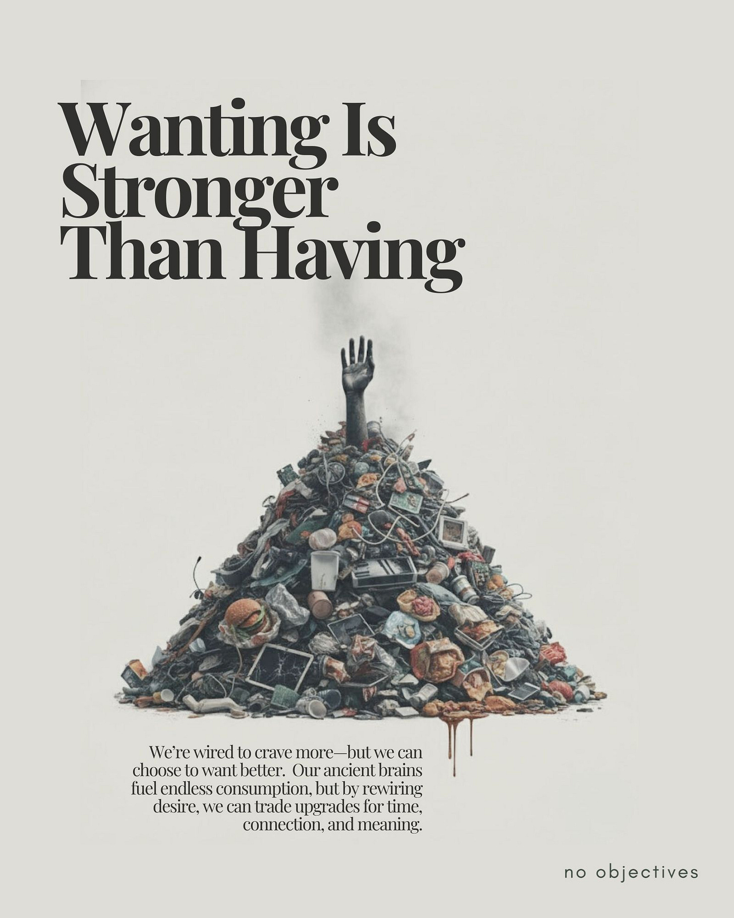 If wanting is stronger than having, then the point isn’t to suppress desire, but to redirect it toward things that don’t burn us out or accelerate ecological collapse.